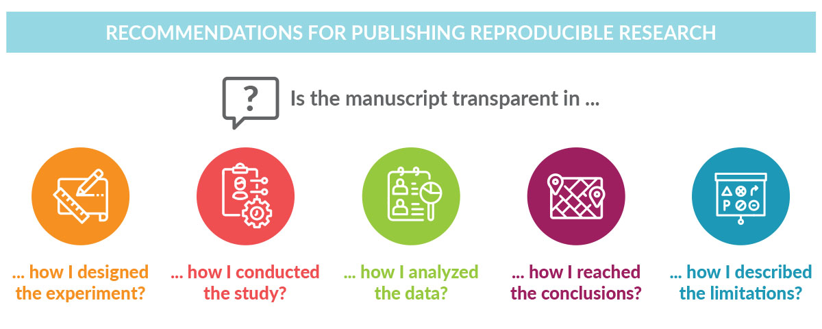 Journals and professional organizations have developed guidance on data reporting to support the development of transparent, and hopefully reproducible, research reports. For example, the Federation of American Societies for Experimental Biology (FASEB), the largest coalition of biomedical researchers in the United States, developed consensus recommendations7 for enhancing reproducibility of research findings. These guidelines promote the reporting of research in a transparent and reproducible manner to ensure that research efforts advance science, medicine, and, ultimately, patient care. Nature journals publish a reporting summary document alongside every life sciences manuscript with detailed information on experimental design, reagents, and analyses8; similar guidance exists for clinical research. Researchers conducting randomized trials should look to the CONSORT statement for practical recommendations and detailed guidance on information that should be included in each section of their manuscript.9 The EQUATOR Network maintains a comprehensive searchable database of reporting guidelines wherein researchers at all stages, from those performing preclinical animal studies to those conducting economic evaluations, can find guidance on the most appropriate information to include when developing a manuscript. These guidelines promote the reporting of research in a transparent and reproducible manner to ensure that research efforts advance science, medicine, and, ultimately, patient care.
